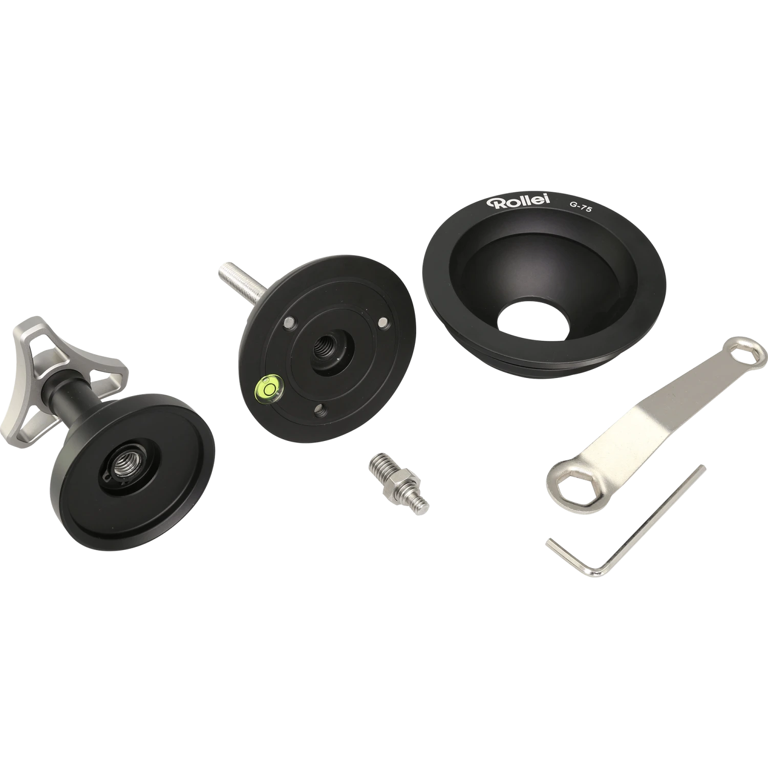 Sie können sowohl Kameras und Stativköpfe mit 3/8- als auch 1/4-Zoll-Aufnahme montieren, denn die Feststellschraube lässt sich, je nach Bedarf, umdrehen. Der Bowl Adapter für Rock Solid Alpha und Lion Rock 30 ist aus Aluminium gefertigt und bringt lediglich 520 g auf die Waage. Ideal, wenn Ihre sonstiges Stativ-Zubehör/Ausrüstung bereits die Tragfähigkeit des Rock Solid Alphas oder des Lion Rock 30 ordentlich in Anspruch nimmt. Neben dem präzise gefertigten G-75 liegt dem Lieferumfang natürlich auch sämtliches Werkzeug bei, das Sie für die Montage benötigen. Mit dem Bowl Adapter wächst das Einsatzspektrums Ihres stabilen und flexiblen Stativs noch weiter.