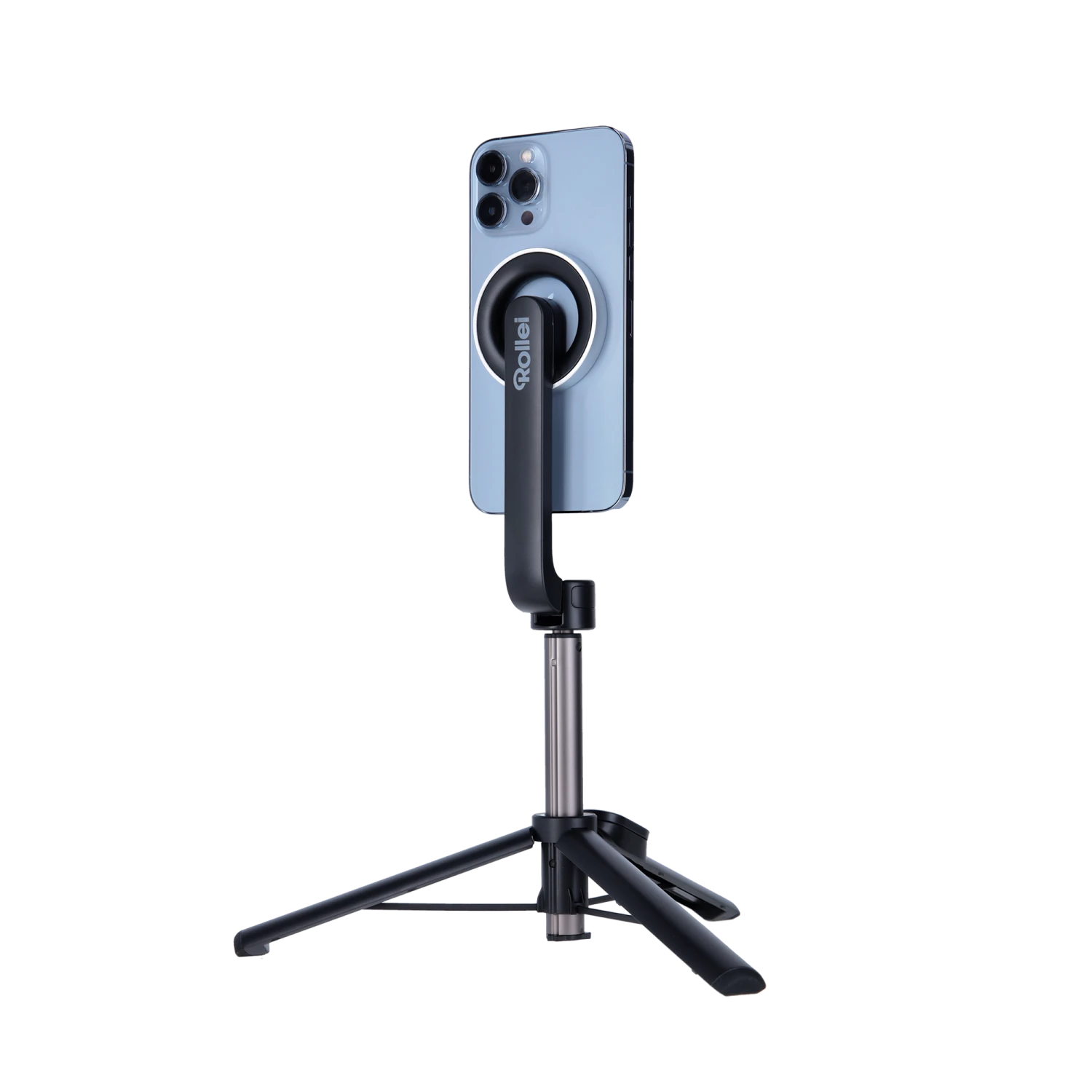 Die flexible kippbare Smartphone-Halterung mit MagSafe®*-Anschluss ermöglicht es Ihnen, Ihr Smartphone mit magnetischer Rückseite schnell und sicher zu befestigen. Die optimale Ausrichtung Ihres Geräts im Hoch- oder Querformat wird so zum Kinderspiel. Diese Funktion ermöglicht es Ihnen, kreative und dynamische Aufnahmen aus jedem Winkel zu erstellen, ohne sich um die Stabilität oder Sicherheit Ihres Smartphones sorgen zu müssen.