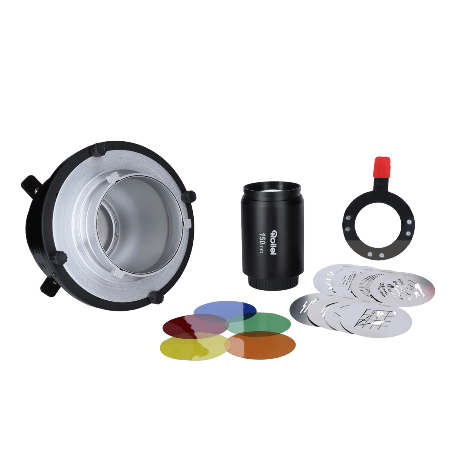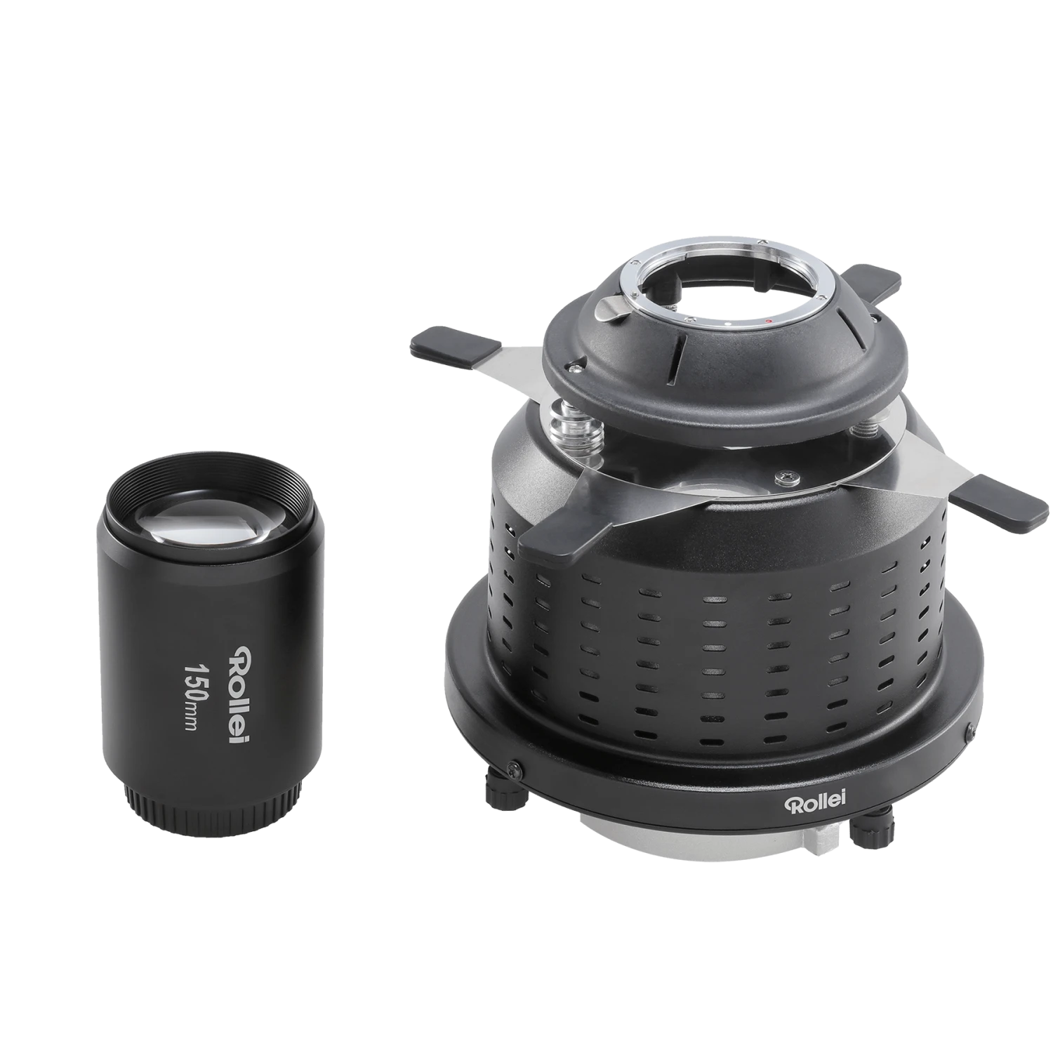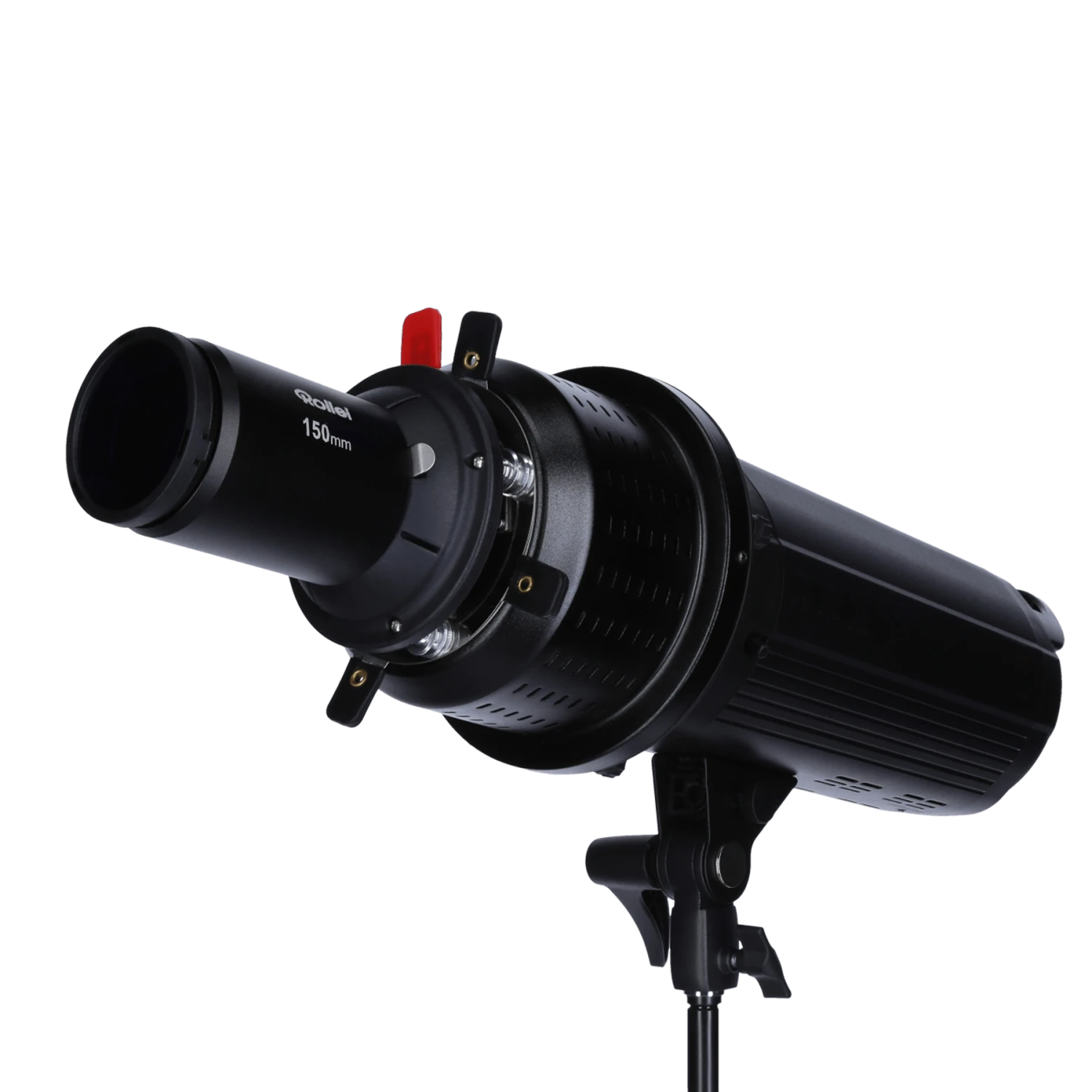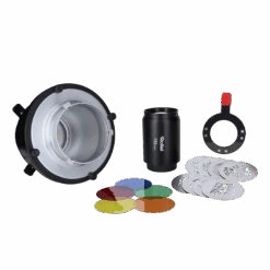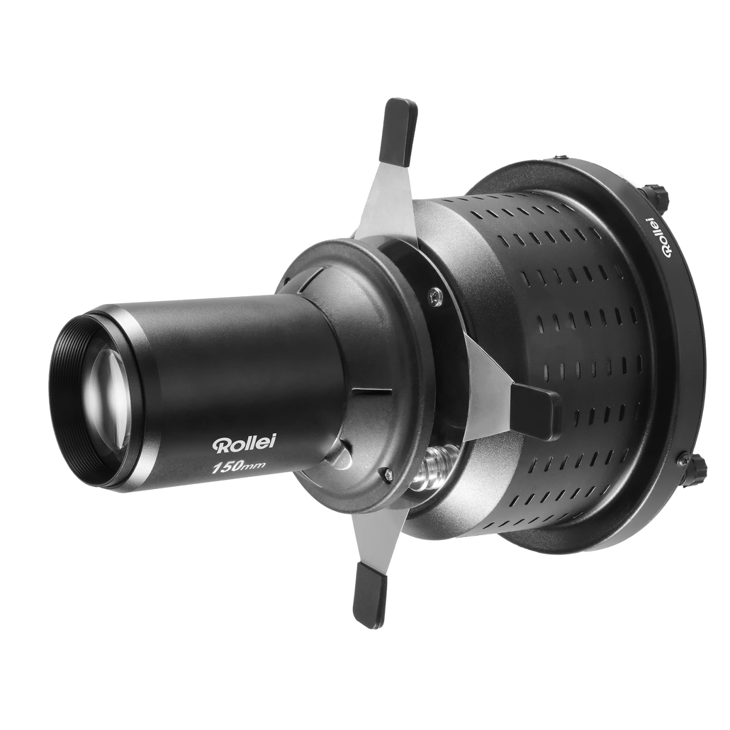 Der Spotvorsatz verfĂĽgt ĂĽber eine fixe Linse mit 150 mm, womit auf Motiv angepasst werden kann. Dank des Bowens-Anschlusses (S-Type) ist der Lichtformer auĂźerdem mit LED-Dauerlichtern (Bis max. 200 Watt*) und vielen Rollei-Blitzen kompatibel.