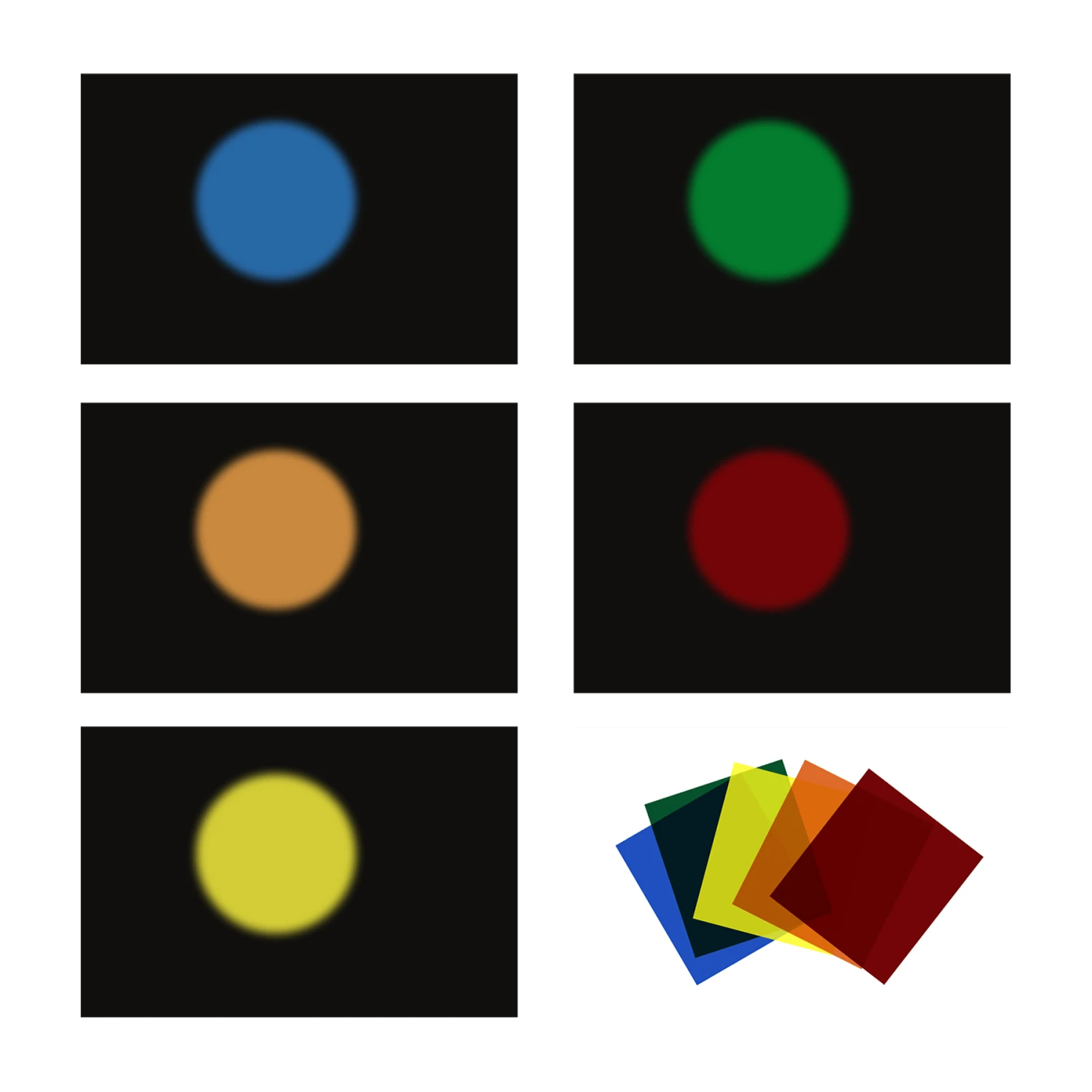 - 5x Farbfolien (rot, orange, gelb, grĂĽn, blau)
